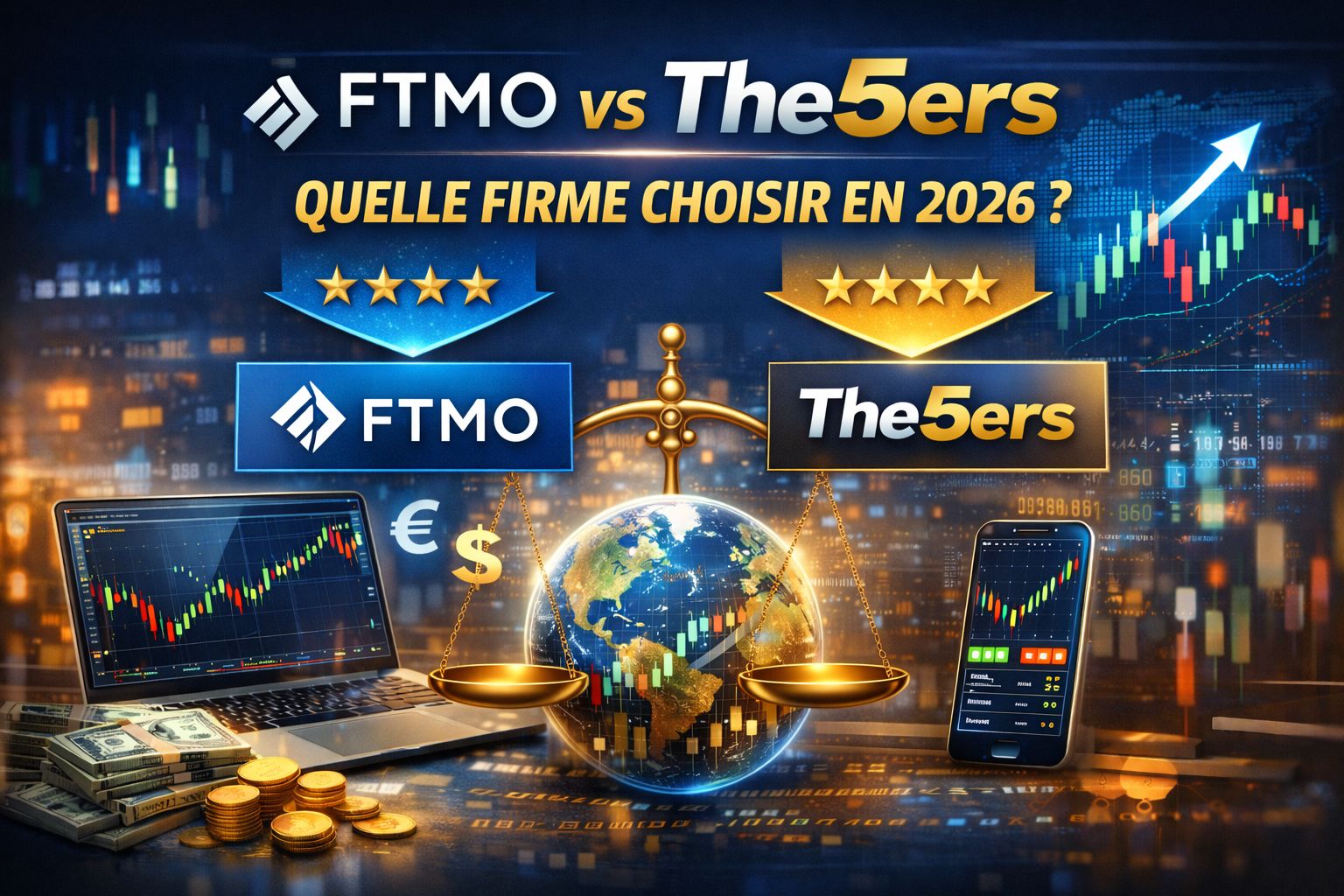 FTMO vs The5ers en 2026 : deux géants du prop trading, mais lequel choisir ? Dans ce comparatif complet, j'analyse les deux prop firms pour vous aider à faire le meilleur choix selon votre profil de trader.